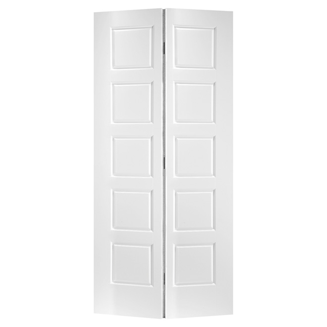 Affix this Metrie bifold door for a timeless upgrade to a small living area. The Riverside folds back against the wall, so it requires little space to open and provide full access to your items. This unit glides flawlessly, since a hollow core makes it relatively light. A conventional stile-and-rail structure allows this 5-panel classic-look interior door to give any room a traditional touch. Durable Masonite hardboard gives it warp resistance, which enables it to tolerate shifts in humidity. This reversible product measures 36 in W x 80 in H x 1 3/8 in thick. Paint the smooth surface of this primed hardboard door to match your home’s overall theme. With enclosed hardware, DIY installation into a 38 in W x 82 1/2 in H rough opening is easy. Recycled lumber means this is an eco-friendly way to freshen up your wardrobe. A 1-year limited warranty supports this item.