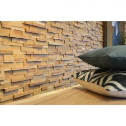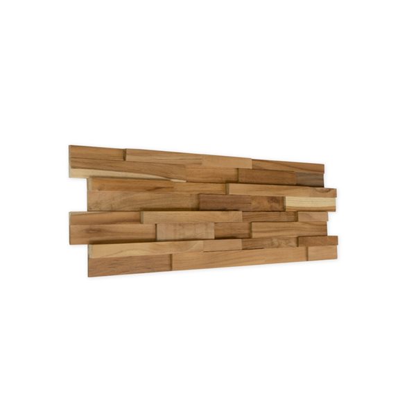 This 3D teak wall paneling is a unique, on-trend solution that helps bring natural wood elements indoors. These textured panels can enhance any home or space from rustic to contemporary. The easy to install panels are ideal for DIYers or renovation contractors.