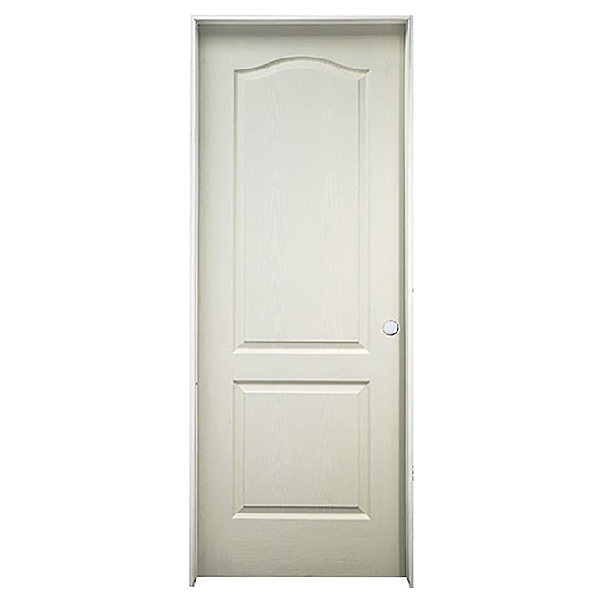 Customize your interior space with the clean and simple design of this Metrie 2-panel door. This classic-style door has two raised panels and an arched top that give a modern look to any decor. The hollow-core interior door is lightweight, which makes it easy to handle and install. Its hardboard material provides durability and resists shrinking, cracking and warping. Already primed, the hardboard door is ready for paint and your choice of handle (available separately). The pre-hung interior door saves installation time on new construction and remodels. Satin-chrome hinges give strength and an attractive look to the door. This right-hand swing interior door measures 30 in W x 80 in H x 1 3/8 in T and comes with a 1-year warranty.