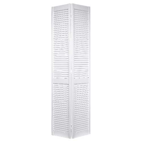 Spruce up your interior using this Metrie bifold door from the Shaker collection. Its full-louvered profile allows air to pass through for increased ventilation. Manufactured in a folding layout, it requires little door-swing space to support installation in small areas such as pantries. This bifold interior door has a white primed finish that eliminates the need for an extra primer coat. Customize its smooth surface with paint or stains to match a decor. Sold with rail, track and frame hardware, the 24-in W x 80-in H door allows for easy DIY installation. Its crack- and warp-resistant build can withstand impact to enable use in high-traffic areas. Manufactured from finger-jointed pine, this 1 1/8-in thick, wood bifold door offers increased durability. It comes with a 1-year warranty.