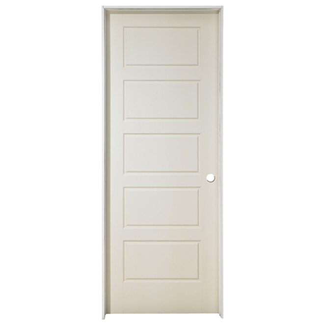 Enhance any room with this Metrie Riverside door. It measures 32 in W x 80 in H x 1 3/8 in T. You can install the sturdy MDF door in a variety of high-traffic areas, such as bathrooms, living rooms and kitchens. Moisture resistant, this pre-hung interior door won’t bow, warp, or crack in humid environments. Three satin-chrome hinges come with the left-hand swing door to save you time. The tight seal between the door and its pre-assembled, 4 9/16-in pine door jamb limits drafts. To reduce preparation time, the door arrives with a pre-drilled hole for a handle (not included). Factory primed, the white pre-hung door arrives ready for paint or installation. A hollow core makes it easy to transport and install. It comes with a 1-year limited warranty.