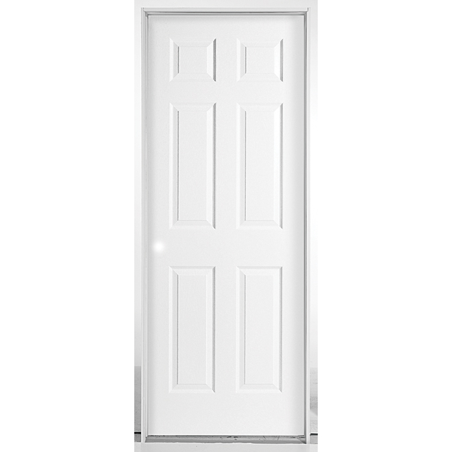 Style up doorways using this 6-panel Metrie Masonite door. Its raised-panel profile and precise shadow lines enhance any home’s aesthetics. This ready to paint, 6-panel, pre-hung interior door comes with a primed surface which eliminates the need for an extra coat. Customize its smooth surface with paint to match or accent any interior decor. Pre-assembled in a 3 9/16-in jointed-pine frame using three satin-chrome hinges, the door offers easy DIY installation. It has a factory-drilled bore to facilitate speedy latch or handle set attachment. Crafted from tough hardboard materials, this right-hand swing, primed hardboard door is durable. Its engineered wood construction can tolerate heavy impact to support use in frequently accessed rooms. This 30-in W x 80-in H x 1 3/8-in T door comes with a 1-year limited warranty.