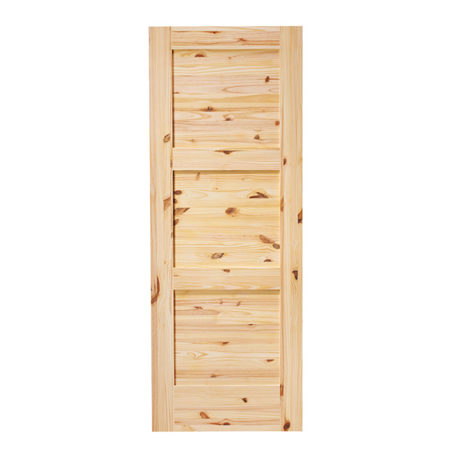 Add a touch of elegance to your interior with this Classic Metrie Interior Door. Made from knotty pine wood, the interior wooden door is lightweight, which makes it easy to handle and install. Its natural, classic look will enhance an interior environment and complement the existing decor. The door has dimensions of 30 in W x 80 in H. The 3-panel, interior door doesn’t trap dust or dirt because of its simple design, so it requires low maintenance. The large dark knots on the door give it a distinct rustic design which allows it to blend into the surrounding furniture. Customize it by painting or staining the surface. Moderately sturdy, the rustic pine door resists shock, which helps reduce the impact of damages. It comes with a 1-year limited warranty.