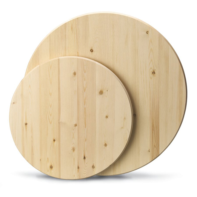 Let your imagination be your guide with the Metrie DIY round panel. Designed for both beginners and woodworking experts, this spruce edge-glued DIY panel is the go-to material for construction projects of all kinds. Use it to create beautiful shelves or to add a finishing touch to certain furniture pieces. Depending on the wood treatment, the panel can be coated over with a variety of finishes. This rigid, lightly sanded board is easy to work with, and lends itself well to a multitude of finishes, namely oil, wax, dye, varnish or paint. 24″ diameter.