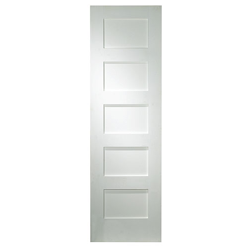 Set up a secure entrance to your private space with this Metrie interior door. It has a solid core that helps dampen noise, minimize echoes and enhance the acoustic performance of a room. Manufactured from durable MDF (medium-density fibreboard), the slab offers reliable crack- and shrink-resistant performance. MDF is not susceptible to pest infestation and stands up well to impact and daily handling. With a pre-primed surface, the interior door enables the smooth layering of a topcoat and undercoat of your preferred paint colour. This shaker-style interior door has uniformly shaped panels that deliver a visually appealing symmetry and upscale flair. It comes with a 1-year limited warranty. The 5-panel interior door measures 24 in W x 80 in H x 1 3/8 in T. Purchase the handle separately.