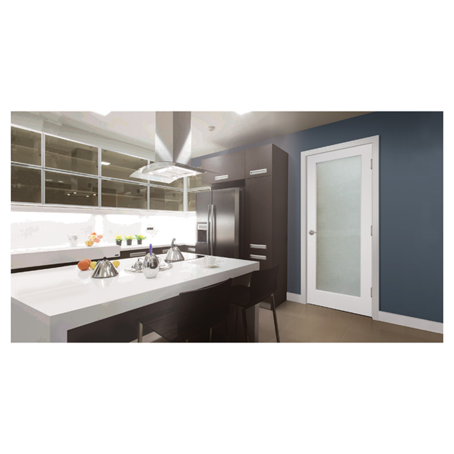 Add a modern touch to your home or business with this Metrie 1-Lite square top French door. Its single pane of glass is translucent to let in natural light and provide privacy at the same time. This reduces reliance on artificial light and energy consumption. Made of medium density fiberboard (MDF), this French interior door is highly durable. It’s resilient against moisture, so it contracts and expands like natural wood without a loss of structural integrity. Resistance to cracking, shrinking and warping in the MDF frame increases the longevity and sturdiness of this door. Clean lines from the straight edges and square top give this door a minimalist and modern appearance. Primer on the surface means this door is ready for your choice of paint. Both glass and MDF clean easily for minimal upkeep. Get a 1-year limited warranty on this 30 in W x 80 in L x 1 3/8 in thick door.